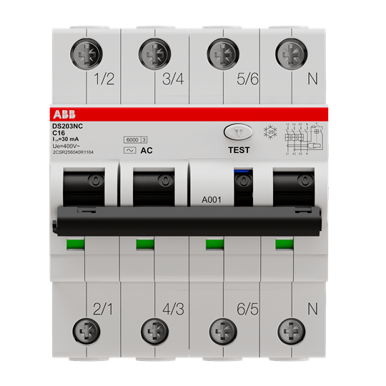 Abb 2CSR256040R1164 DS203 NC C16 AC30 RCBO Aşırı akım korumalı kaçak akım cihazı